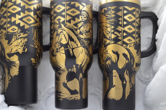 Epic 40oz Tumbler Indigenous Warrior on Horseback - Inspired by Strength, Crafted for Legends