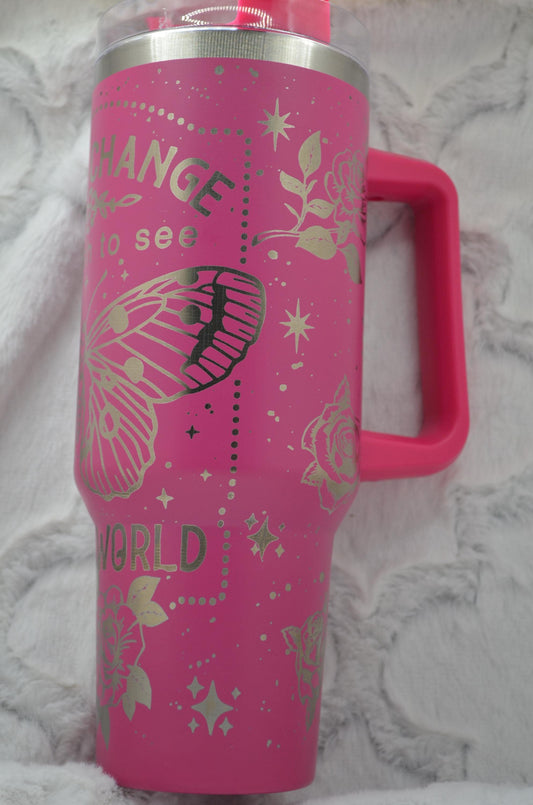Custom Engraved 20oz Tumbler with Butterflies & Flowers